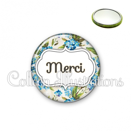 Miroir simple avec dos métallique décoré d'une image fantaisie et texte.