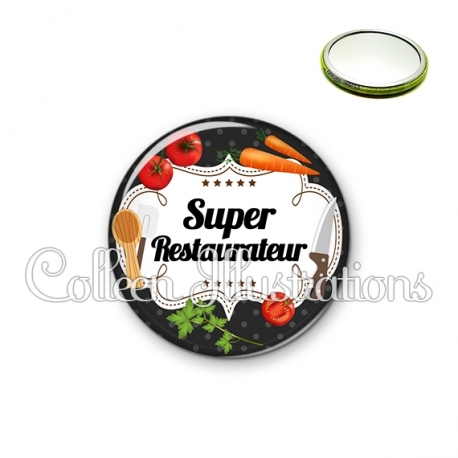 Miroir simple avec dos métallique décoré d'une image fantaisie et texte.