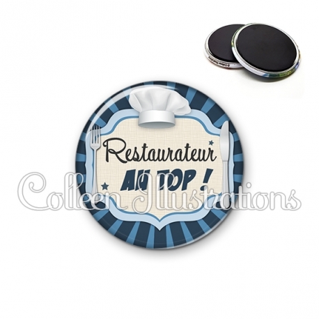 Image imprimée en haute résolution sur papier de qualité, protégée d'un film plastique, et sertie sur une coque métallique avec dos aimanté.