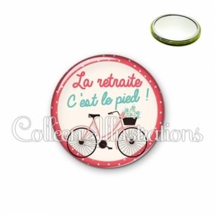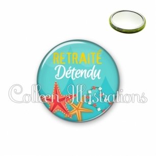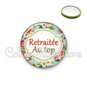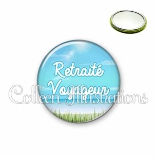 Miroir simple avec dos métallique décoré d'une image fantaisie et texte.