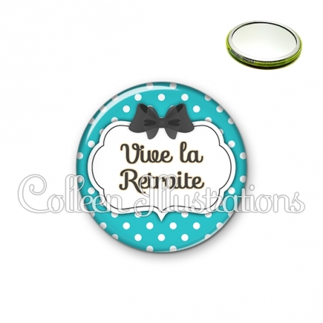 Miroir simple avec dos métallique décoré d'une image fantaisie et texte.