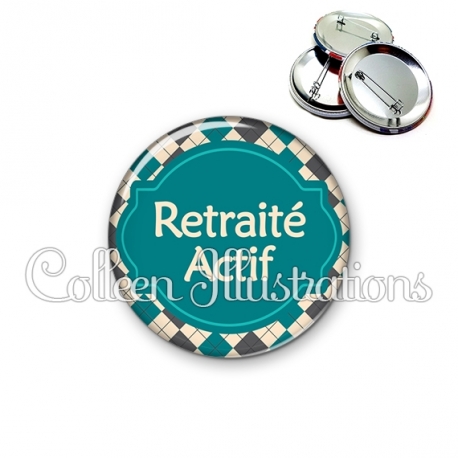 Image imprimée en haute résolution sur papier de qualité, protégée d'un film plastique, et sertie sur une coque et épingle métallique.