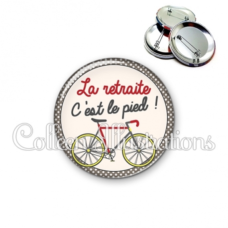 Image imprimée en haute résolution sur papier de qualité, protégée d'un film plastique, et sertie sur une coque et épingle métallique.