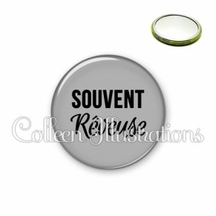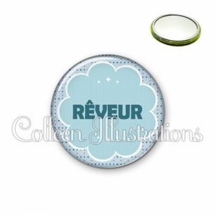 Miroir simple avec dos métallique décoré d'une image fantaisie et texte.