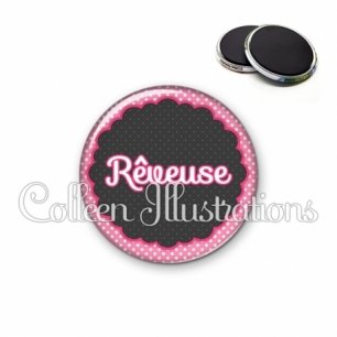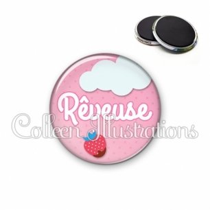 Image imprimée en haute résolution sur papier de qualité, protégée d'un film plastique, et sertie sur une coque métallique avec dos aimanté.