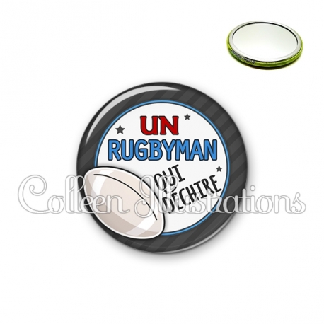 Image imprimée en haute résolution sur papier de qualité, protégée d'un film plastique, et sertie sur une coque métallique avec dos miroir. Une seule face, non grossissante.