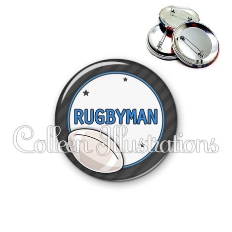 Image imprimée en haute résolution sur papier de qualité, protégée d'un film plastique, et sertie sur une coque et épingle métallique.