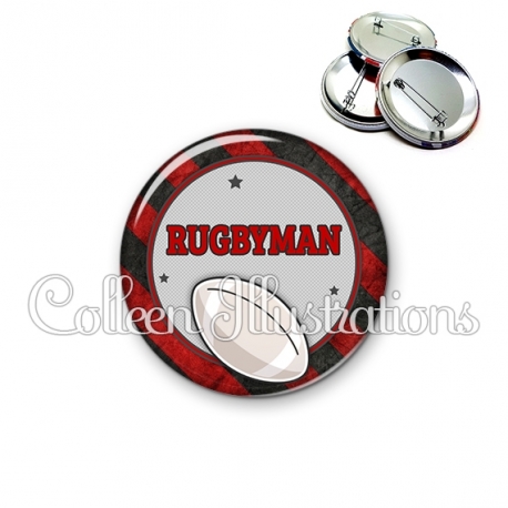 Image imprimée en haute résolution sur papier de qualité, protégée d'un film plastique, et sertie sur une coque et épingle métallique.