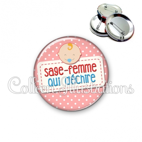 Image imprimée en haute résolution sur papier de qualité, protégée d'un film plastique, et sertie sur une coque et épingle métallique.