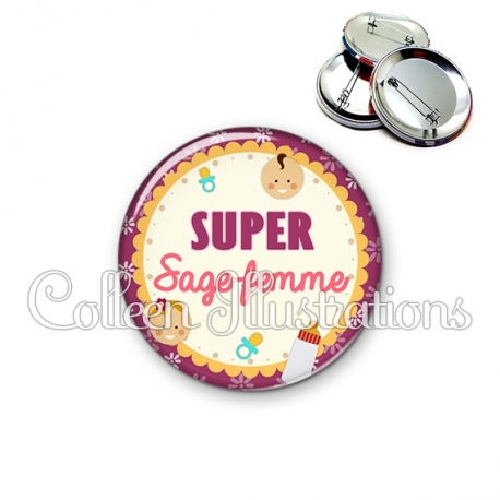 Image imprimée en haute résolution sur papier de qualité, protégée d'un film plastique, et sertie sur une coque et épingle métallique.