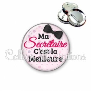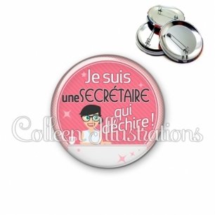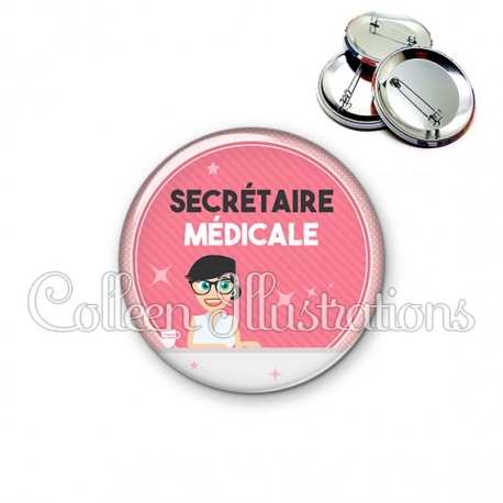 Image imprimée en haute résolution sur papier de qualité, protégée d'un film plastique, et sertie sur une coque et épingle métallique.