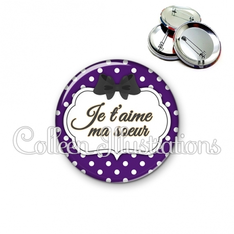 Image imprimée en haute résolution sur papier de qualité, protégée d'un film plastique, et sertie sur une coque et épingle métallique.
