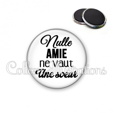 Image imprimée en haute résolution sur papier de qualité, protégée d'un film plastique, et sertie sur une coque métallique avec dos aimanté.