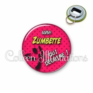 Décapsuleur métallique avec image fantaisie et texte.