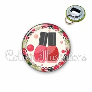 Image imprimée en haute résolution sur papier de qualité, protégée d'un film plastique, et sertie sur une coque métallique avec dos décapsuleur.
