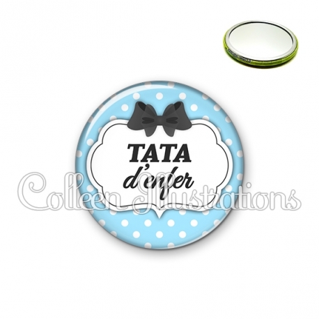 Miroir simple avec dos métallique décoré d'une image fantaisie et texte.