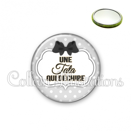 Miroir simple avec dos métallique décoré d'une image fantaisie et texte.