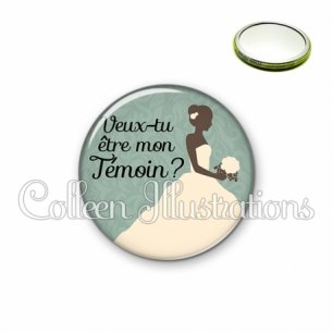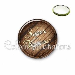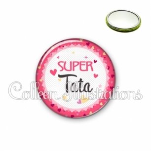 Miroir simple avec dos métallique décoré d'une image fantaisie et texte.