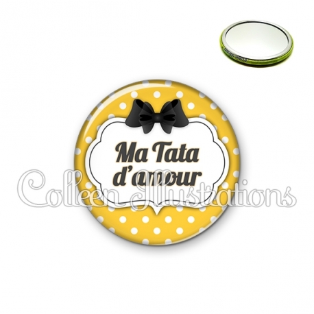 Miroir simple avec dos métallique décoré d'une image fantaisie et texte.