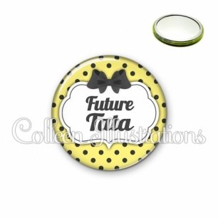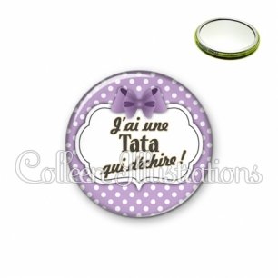 Miroir simple avec dos métallique décoré d'une image fantaisie et texte.