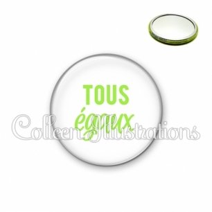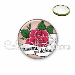 Miroir simple avec dos métallique décoré d'une image fantaisie et texte.