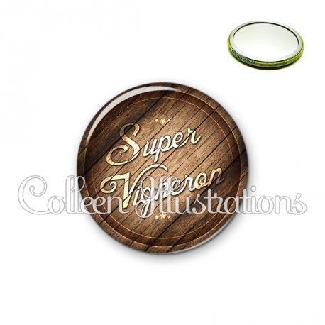 Miroir simple avec dos métallique décoré d'une image fantaisie et texte.