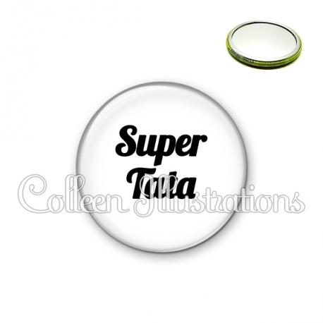 Miroir simple avec dos métallique décoré d'une image fantaisie et texte.