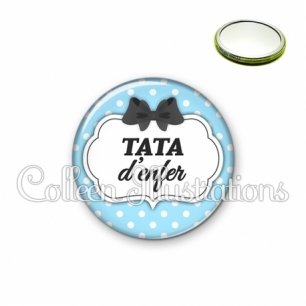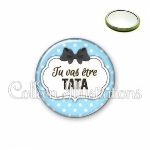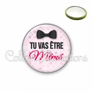 Miroir simple avec dos métallique décoré d'une image fantaisie et texte.