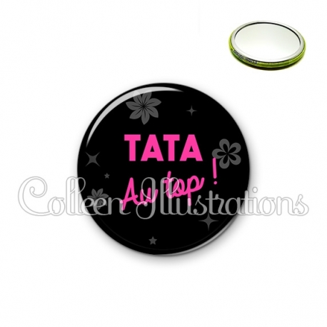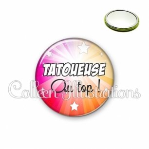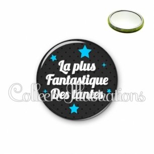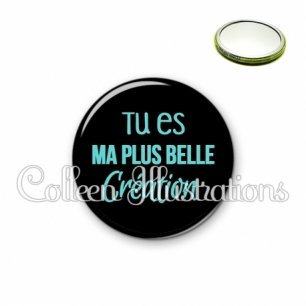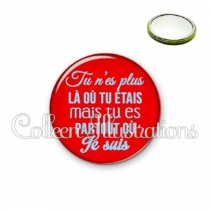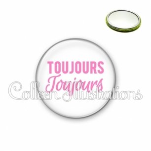 Miroir simple avec dos métallique décoré d'une image fantaisie et texte.
