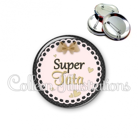Image imprimée en haute résolution sur papier de qualité, protégée d'un film plastique, et sertie sur une coque et épingle métallique.