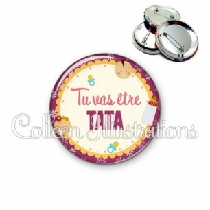 Image imprimée en haute résolution sur papier de qualité, protégée d'un film plastique, et sertie sur une coque et épingle métallique.