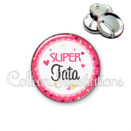 Image imprimée en haute résolution sur papier de qualité, protégée d'un film plastique, et sertie sur une coque et épingle métallique.