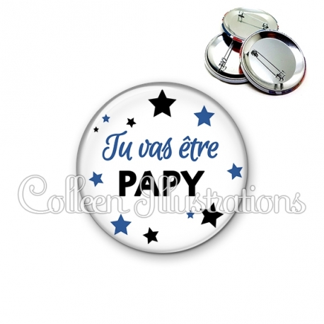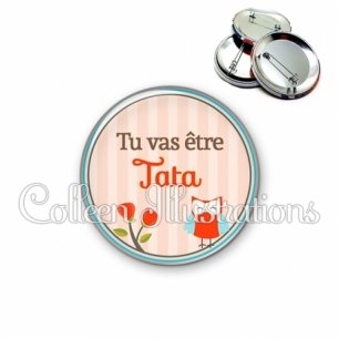 Image imprimée en haute résolution sur papier de qualité, protégée d'un film plastique, et sertie sur une coque et épingle métallique.