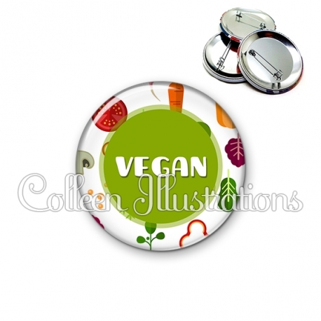 Image imprimée en haute résolution sur papier de qualité, protégée d'un film plastique, et sertie sur une coque et épingle métallique.