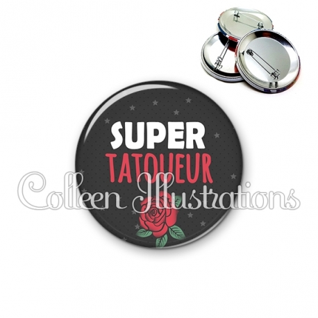 Image imprimée en haute résolution sur papier de qualité, protégée d'un film plastique, et sertie sur une coque et épingle métallique.