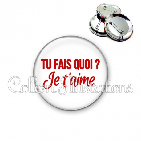 Badge Tu fais quoi ? Je t'aime.