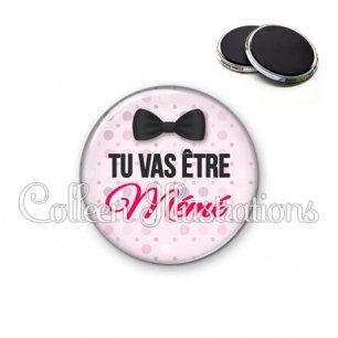 Magnet métallique avec image fantaisie et texte.