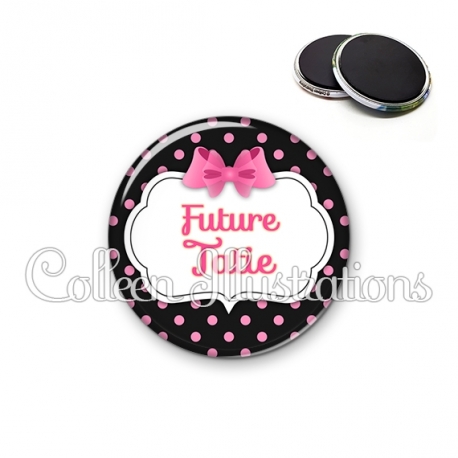 Magnet métallique avec image fantaisie et texte.
