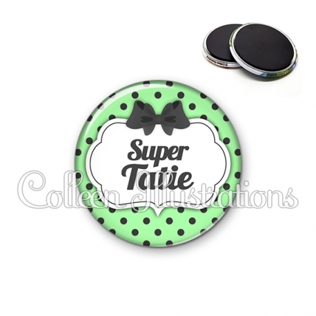 Magnet métallique avec image fantaisie et texte.