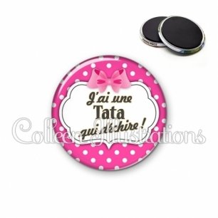 Magnet métallique avec image fantaisie et texte.