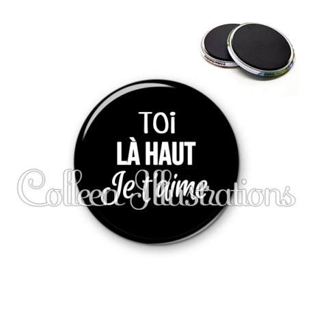 Image imprimée en haute résolution sur papier de qualité, protégée d'un film plastique, et sertie sur une coque métallique avec dos aimanté.