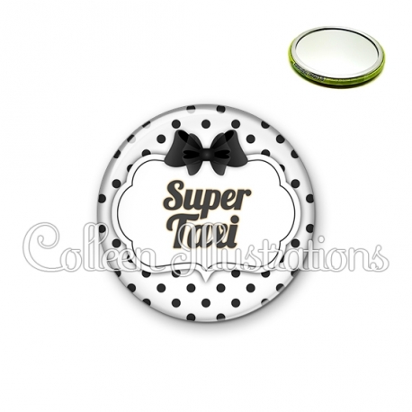 Miroir simple avec dos métallique décoré d'une image fantaisie et texte.