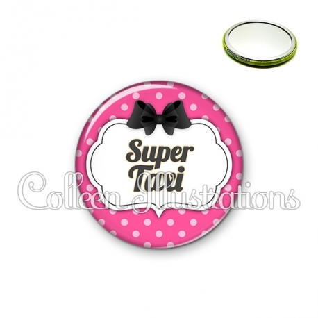 Miroir simple avec dos métallique décoré d'une image fantaisie et texte.