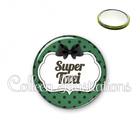 Miroir simple avec dos métallique décoré d'une image fantaisie et texte.