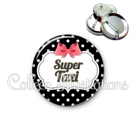 Image imprimée en haute résolution sur papier de qualité, protégée d'un film plastique, et sertie sur une coque et épingle métallique.