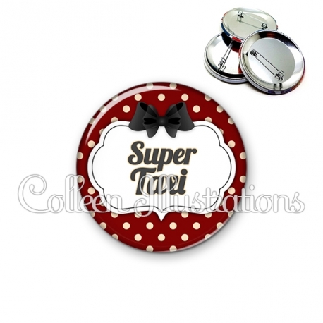 Image imprimée en haute résolution sur papier de qualité, protégée d'un film plastique, et sertie sur une coque et épingle métallique.