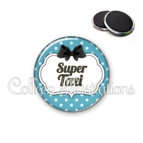 Image imprimée en haute résolution sur papier de qualité, protégée d'un film plastique, et sertie sur une coque métallique avec dos aimanté.