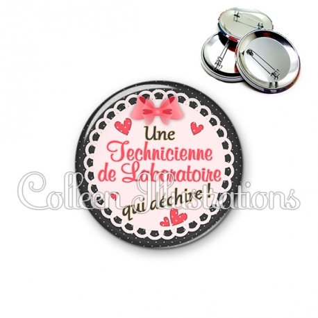 Image imprimée en haute résolution sur papier de qualité, protégée d'un film plastique, et sertie sur une coque et épingle métallique.
