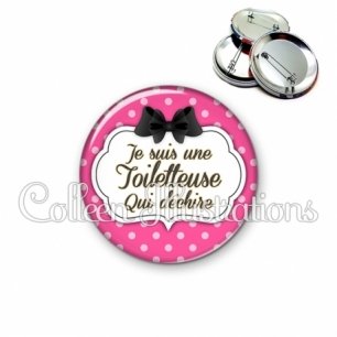 Image imprimée en haute résolution sur papier de qualité, protégée d'un film plastique, et sertie sur une coque et épingle métallique.