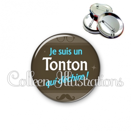 Image imprimée en haute résolution sur papier de qualité, protégée d'un film plastique, et sertie sur une coque et épingle métallique.